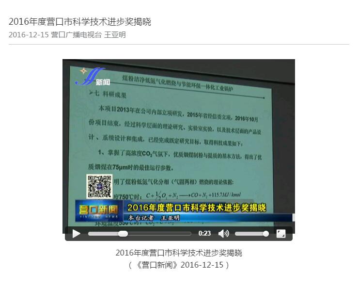 Lvyuan boiler was awarded the first prize of science and technology progress in yingkou city