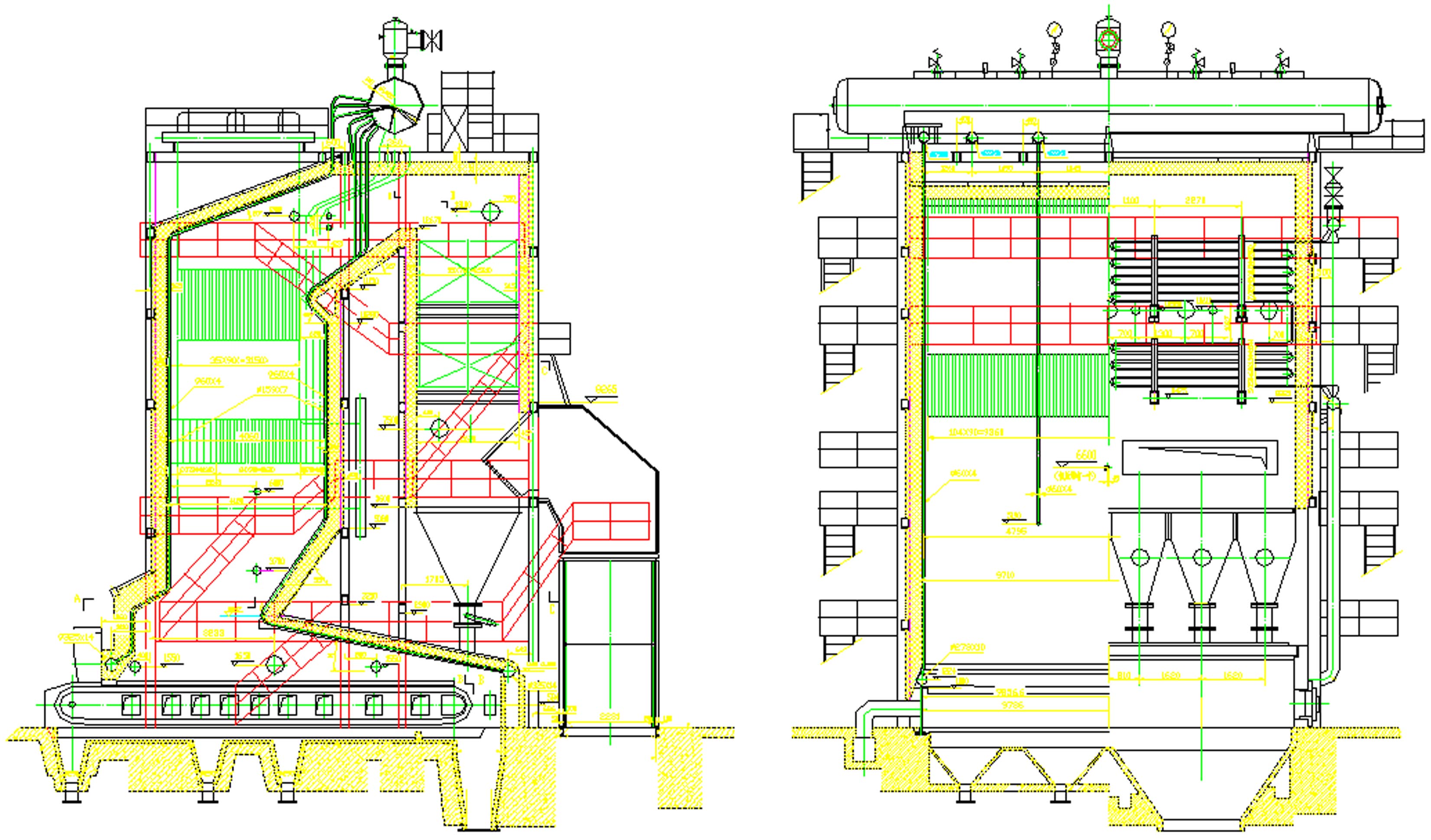 6.钢架按抗8级地震烈度设计,门孔附近均设有平台,对称布置,便于锅炉操作和维修。