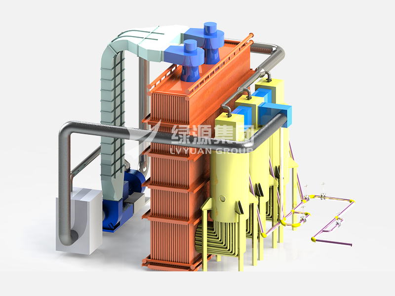 由于锅炉采用立式结构,因此结构紧凑,占地面积小;同时,垂直布置的对流换热部分更加利于锅炉检修时清洗水的排放;U型烟气流程与水流程呈逆流布置,增加了烟气与水的换热温压,降低了排烟温度,使锅炉系统的热效率增大;